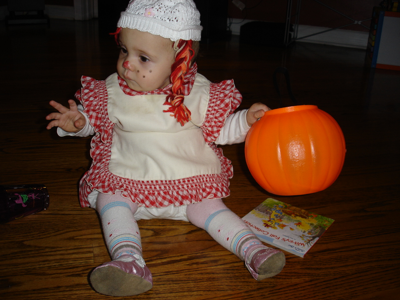 The next day was Halloween. A day for masks, Skyping with a good half of Trick or Treating cousins (what’s a telephone?), carving pumpkins (you’re doing WHAT to the punkins?!), giving buckets of candy away to other kids (they get ALL of it?) and dressing up as Raggedy Ann (I did this last week, weirdos.) Aside from the oddity of hearing the doorbell every five minutes, she had a pretty decent time. She even got to take a bath with all of the leftover cupcake ducks.