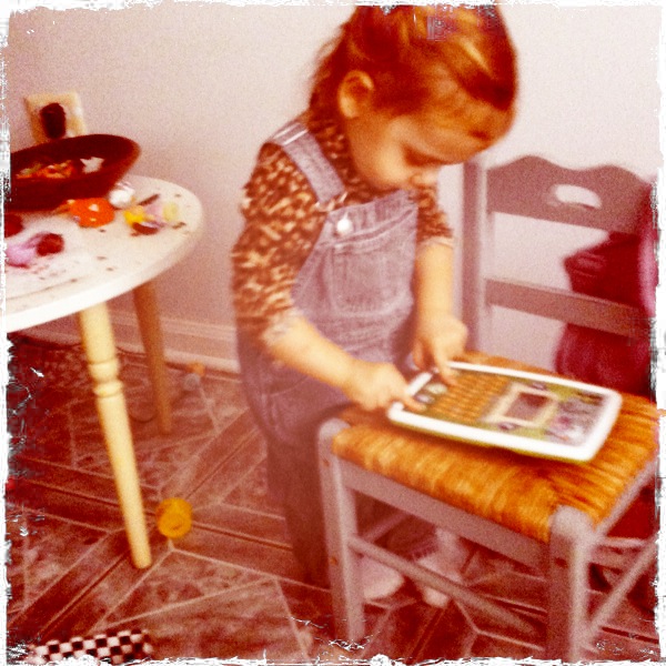 Being as my child was born in ’09, she already has the techie knowledge so inherent in her generation- so she flipped it over and turned the power on immediately. And regardless of how often I initially showed her the lower buttons of ABC, email, stories, and music, she really just wanted to spend a good twenty minutes pressing the two dogs, cat, and chipmunk(?) at the very top to make them say different phrases. I completely understood.